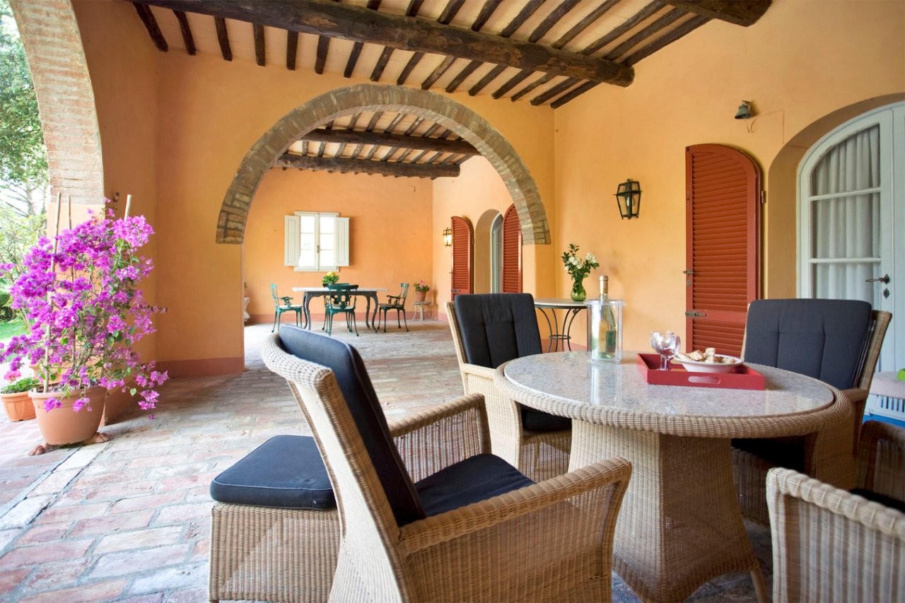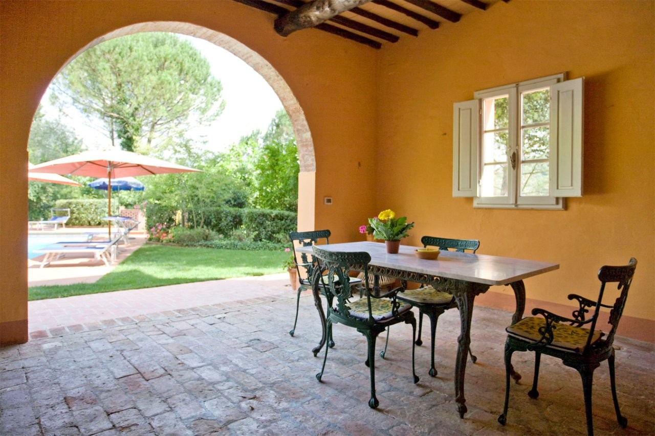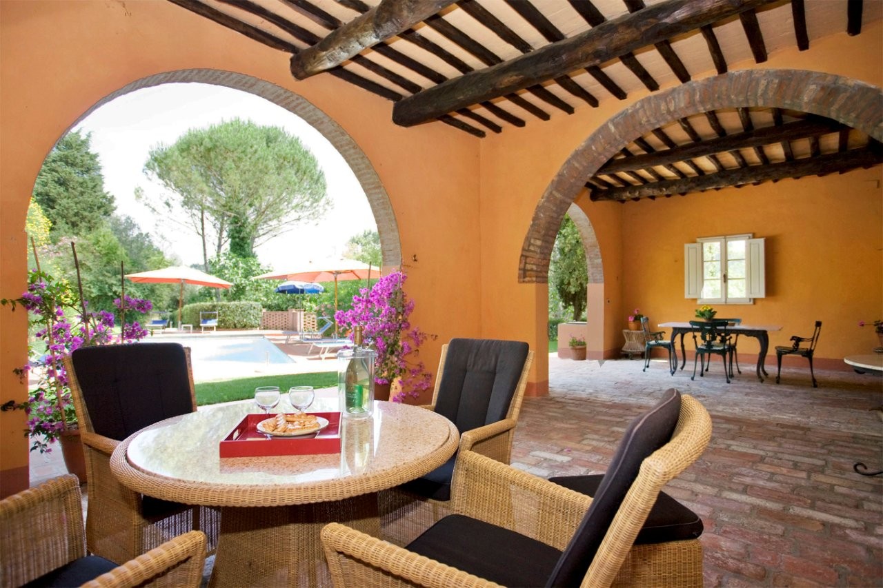 Omsorgsfullt renoverad villa i trakten kring Pisa. Ursprungliga detaljer har bevarats, såsom toskanska terrakottagolv. Rymligt välvt vardagsrum som leder till en veranda möblerad för måltider utomhus framför poolen (10 x 5 meter) och den välskötta trädgården. BBQ.