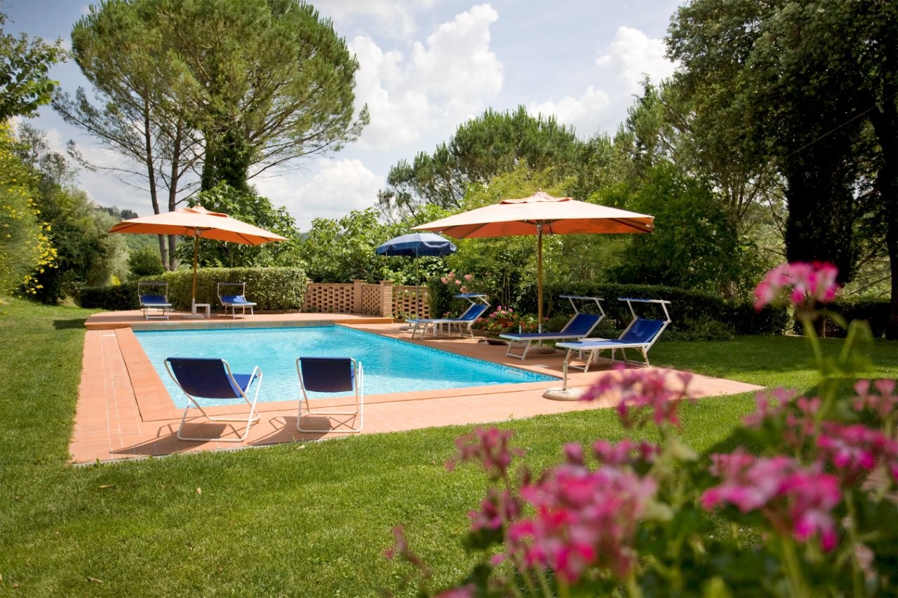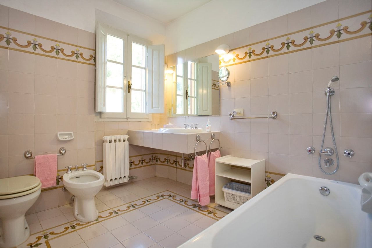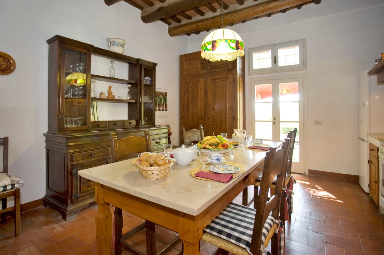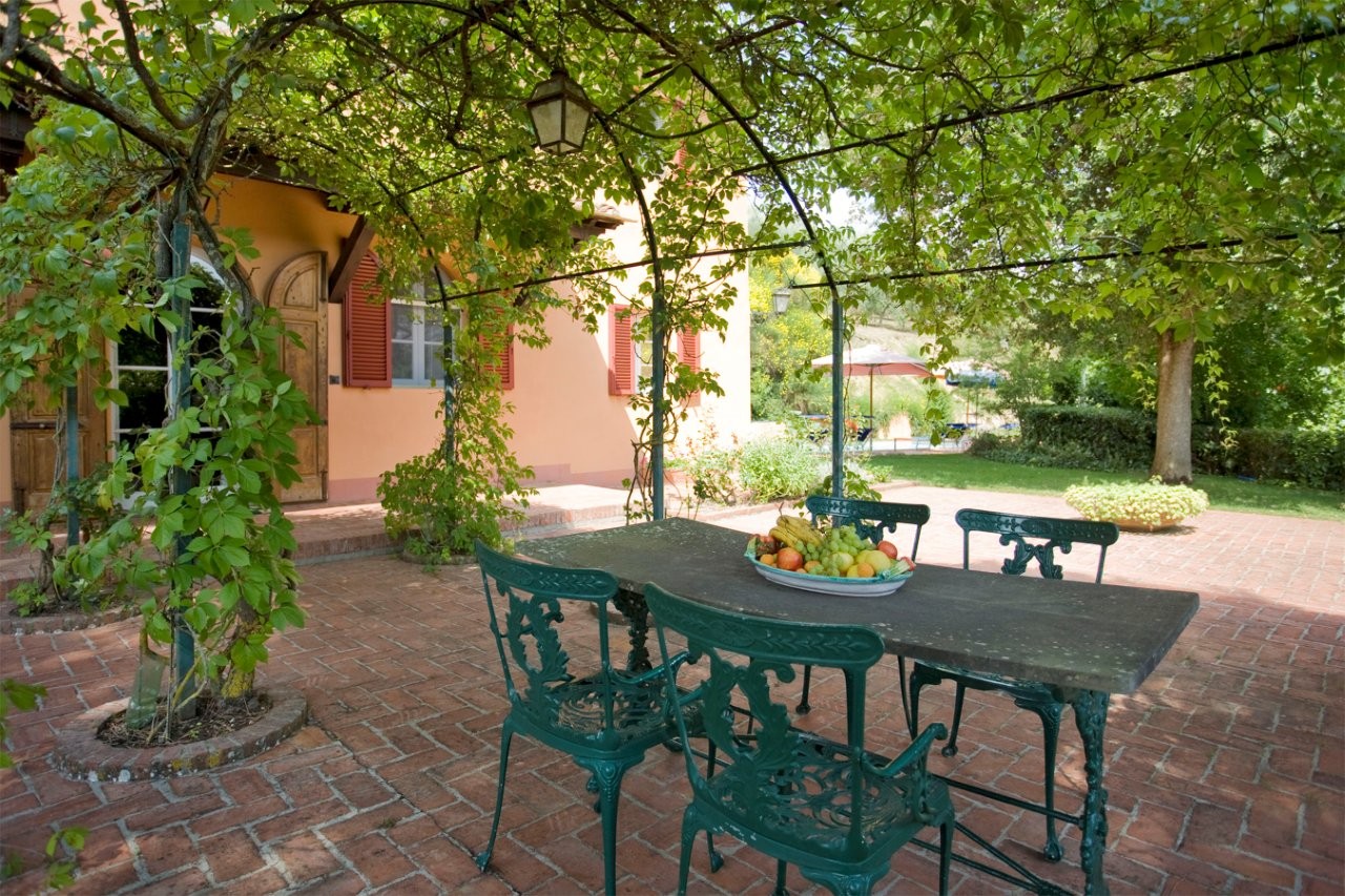 Omsorgsfullt renoverad villa i trakten kring Pisa. Ursprungliga detaljer har bevarats, såsom toskanska terrakottagolv. Rymligt välvt vardagsrum som leder till en veranda möblerad för måltider utomhus framför poolen (10 x 5 meter) och den välskötta trädgården. BBQ.